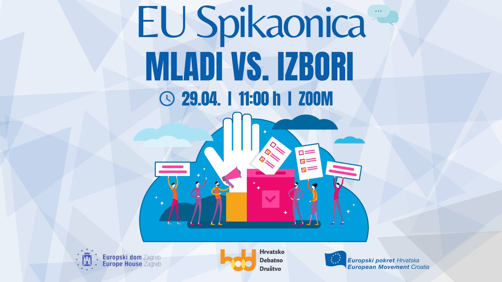 Cilj projekta EU Spikaonica je informirati i educirati mlade o važnosti promicanja europskih ideja, a time i političke participacije mladih. Projekt EU Spikaonica pokrenut je od strane Europskog doma Zagreb, Europskog pokreta Hrvatska i Hrvatskog Debatnog Društva kako bi mlade u Hrvatskoj pobliže upoznali sa Ciljevima i Strategijom za mlade Europske Unije.