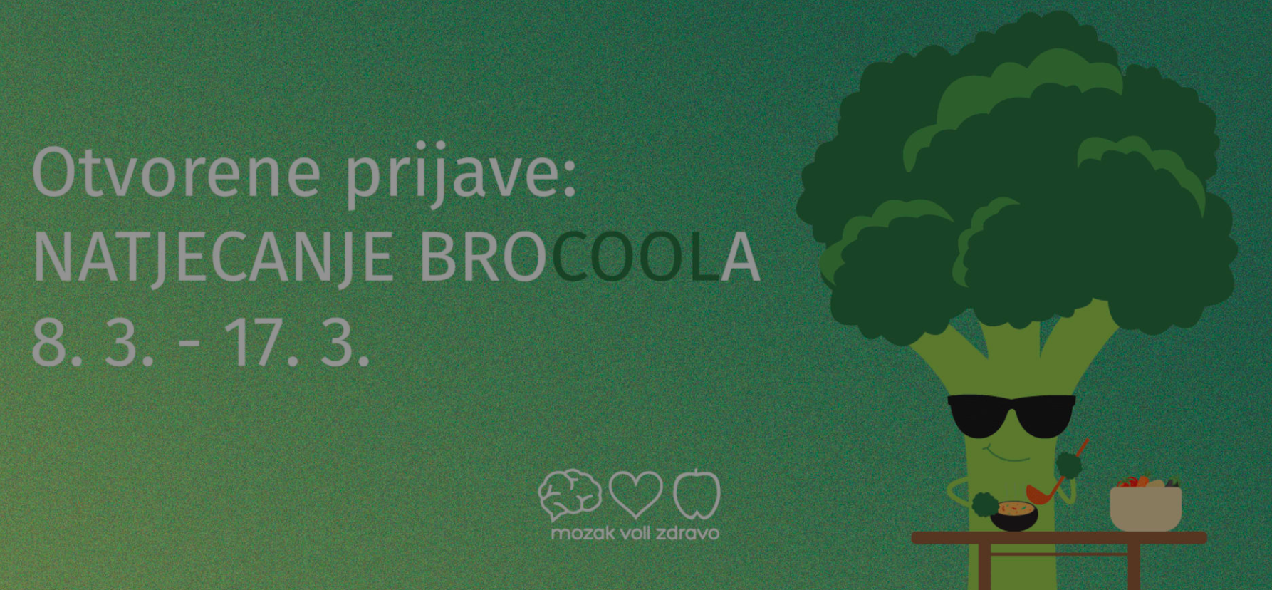 Projekt Mozak voli zdravo čiji je glavni zadatak motivirati i educirati mlade ljude o zdravom načinu prehrane te poboljšanju životnih navika i ove godine – već tradicionalno, organizira kulinarsko natjecanje BrocoolaPrijave su otvorene od 8 do 17. ožujka. Natjecanje se održava za sve studente koji uživaju u kuhanju, kreativni su i nose u sebi natjecateljski duh. Svake godine pomno se bira glavni zadatak natjecanja, a ove godine to će biti zdrave filmske grickalice.
